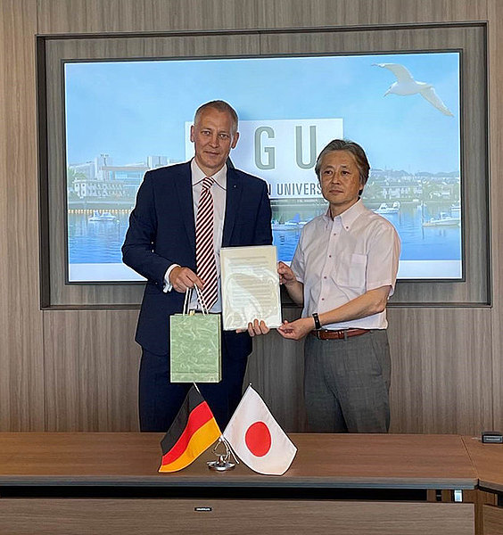 Ilmenau/Rudolstadt – Den Besuch der Weltausstellung Expo in diesem Jahr in Osaka nutzte TITK-Direktor Benjamin Redlingshöfer auch als „Botschafter Thüringens“. So stand er im Juni nicht nur im Deutschen Pavillon auf der Bühne, um wichtige Innovationen aus dem TITK dem Expo-Publikum live vorzustellen. Er traf unter anderem auch mit Vertretern des Automobil OEM Isuzu und mit der Führung der Kanto Gakuin Universität (KGU) zusammen. Im Gepäck: eine vom Ilmenauer Uni-Präsidenten Prof. Dr. Kai-Uwe Sattler unterzeichnete Kooperationsvereinbarung. Diese konnte nun in Yokohama auch der Präsident der KGU, Prof. Dr. Yoshinari Koyama, per Unterschrift bestätigen.
