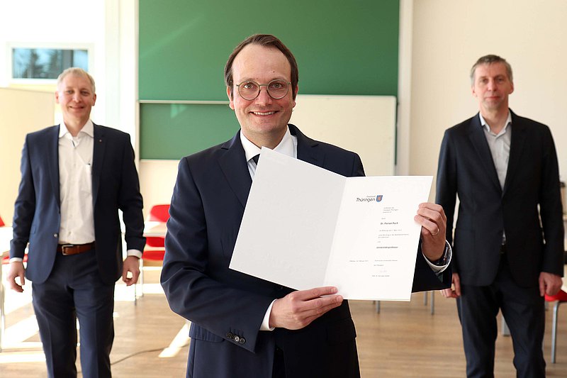 Als Professor für Kunststofftechnik arbeitet Florian Puch künftig viel an der Schnittstelle zwischen TU Ilmenau und TITK Rudolstadt. Beide Einrichtungen wirken seit Jahren eng zusammen. Während die Universität Grundlagenforschung in den Werkstoff- und Materialwissenschaften betreibt, überführt das TITK, eines der führenden privaten Materialforschungsinstitute auf dem Gebiet der polymeren Funktions- und Konstruktionswerkstoffe, innovative Entwicklungen in Wirtschaft und Industrie. Diese Verbindung war es auch, die den 38-Jährigen mit bewogen hat, aus Stuttgart nach Thüringen zu ziehen: „Die Grundlagenforschung an der TU Ilmenau und die wirtschaftsnahe Forschung am TITK Rudolstadt ergänzen sich hervorragend, um die gesamte Innovationskette für die Kunststoffbranche in Thüringen und darüber hinaus durchgängig abzubilden“.
