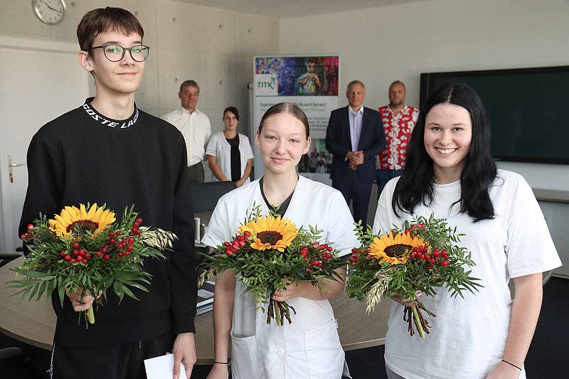 Ein herzliches Willkommen gab es am Donnerstag für drei neue Auszubildende im TITK. Jolina Stolz, Eileen Linke und Johan Maruschke freuen sich darauf, in den nächsten dreieinhalb Jahren am Rudolstädter Forschungsinstitut den Beruf des Chemielaboranten zu erlernen.