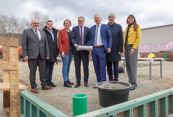 Hand in Hand und fachgerecht mit Bauhelm und Maurerkelle legten der Thüringer Ministerpräsident Mario Voigt und TITK-Direktor Benjamin Redlingshöfer heute Vormittag feierlich den Grundstein für ein neues Innovationszentrum in Rudolstadt. Unter dem Namen „DICE – Demonstration and Innovation Center for Textile Circular Economy“ wird das Innovationszentrum unter anderem die textile Kreislaufwirtschaft in den Fokus nehmen. Mit einem Kostenumfang von rund 11,5 Millionen Euro handelt es sich um die bisher größte Einzelinvestition in der Geschichte des TITK.