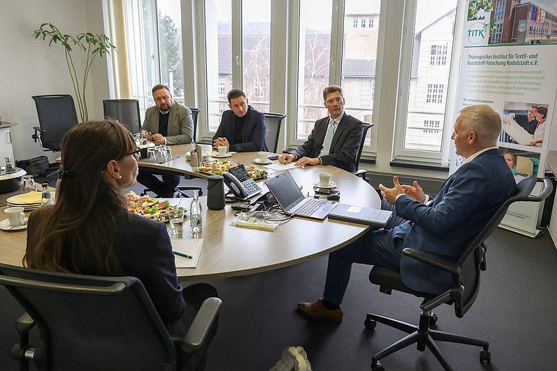 Rudolstadt – The discussion was extremely constructive and took place in a confidential atmosphere between the head of the TITK and Christian Hirte, Parliamentary State Secretary at the Federal Ministry of Transport, David Gregosz, a member of the Committee on Internal Affairs and the Committee on European Union Affairs; Michael Hose, a member of the Committee on Education, Family, Senior Citizens, Women, and Youth and the Committee on Culture and Media; and Diana Herbstreuth, a member of the Committee on Defense and the Committee on Economic Cooperation and Development.