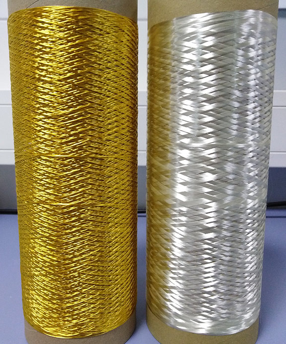 Eine nachfolgende Heißreckung bei 195°C erhöht die Faserfestigkeit (siehe Tab.1), erzeugt aber einen Gelbstich in der Faser (siehe Abb.2). Gröbere Fasern spinnen stabiler. Die erhaltenen PAN-Filamente lassen sich zu Karbonfasern veredeln, deren Festigkeit über 1800 MPa und E-Modul über 240 GPa beträgt.
