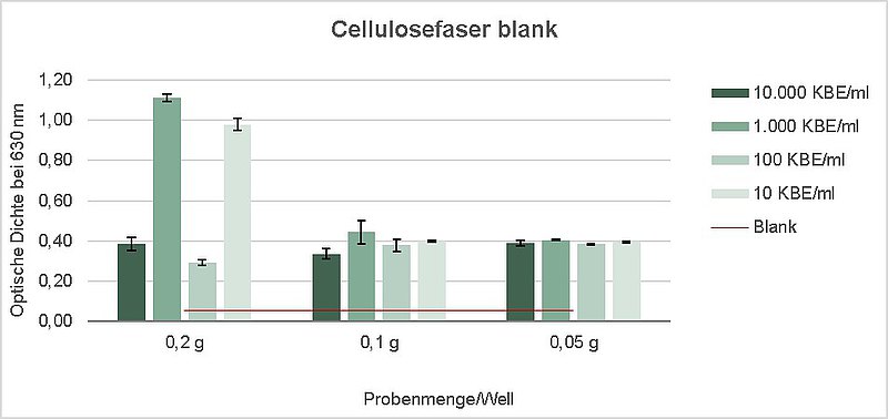 Im Fokus standen verschiedene Vernetzungsreaktionen mit unterschiedlichen Proteinen wie Gelatine, Soja, Keratin und Glucoseoxidase als Model-Enzym. Als Reagenzien wurden sowohl typische Proteinvernetzer als auch typische Agentien zur Oberflächenausrüstung verwendet und die Bedingungen für eine permanente Anbindung eruiert. Dabei gelang es, mit unterschiedlichen Agentien, in Waschversuchen nichtauswaschbare Beschichtungen mit Proteinen herzustellen. Für das Enzym wurden insbesondere Agentien gewählt bei denen keine Nachbehandlung mit erhöhter Temperatur notwendig ist. Für die Fasern an denen eine Enzymanbindung erfolgreich war, konnte eine eindeutige H2O2 Exposition und die Hemmung des Bakterienwachstum von S. aureus Bakterien nachgewiesen werden (siehe auch Abbildung ). Die angebundenen Proteine verändern zudem die Oberflächentextur der Textilien, was auch fühlbar ist. Es wurde zudem eine maximal mögliche Menge an Protein in Abhängigkeit vom verwendeten Protein an der Faseroberfläche festgestellt.
